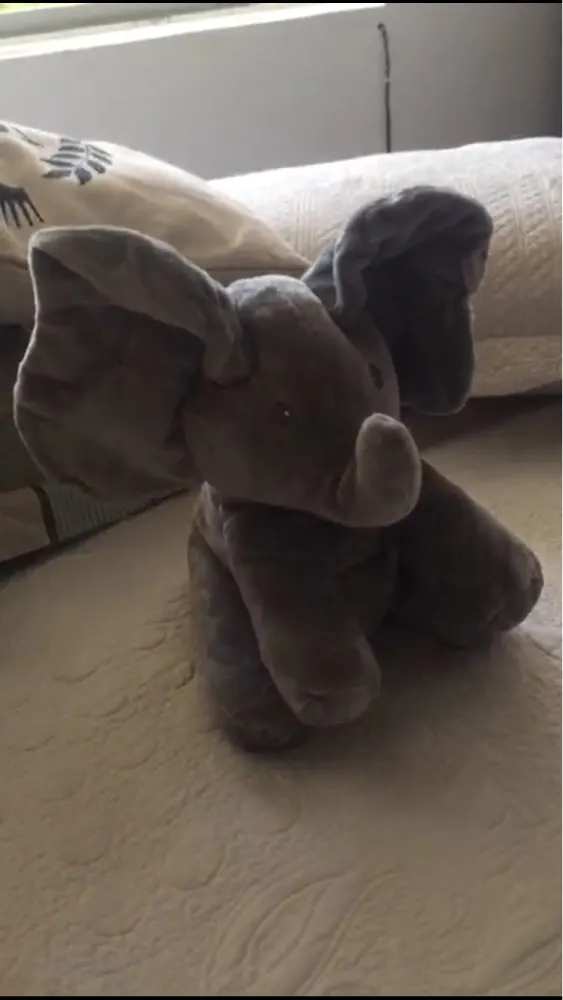 - Peek-a-boo Can sing "Do Your Ears Hang Low", also can play and say "Peek-A-Boo, Where are you", Ears Move and Flap during play to delight baby.