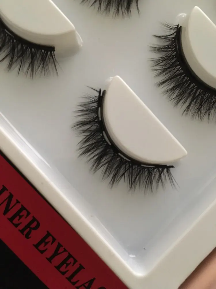 The design is simple. Two strips of lashes are lined with tiny magnets. These strips are made to fit both above and underneath your natural lashes. So in a sense, you are sandwiching your lashes in between them. The magnets stick to each other and hold the lashes in place.